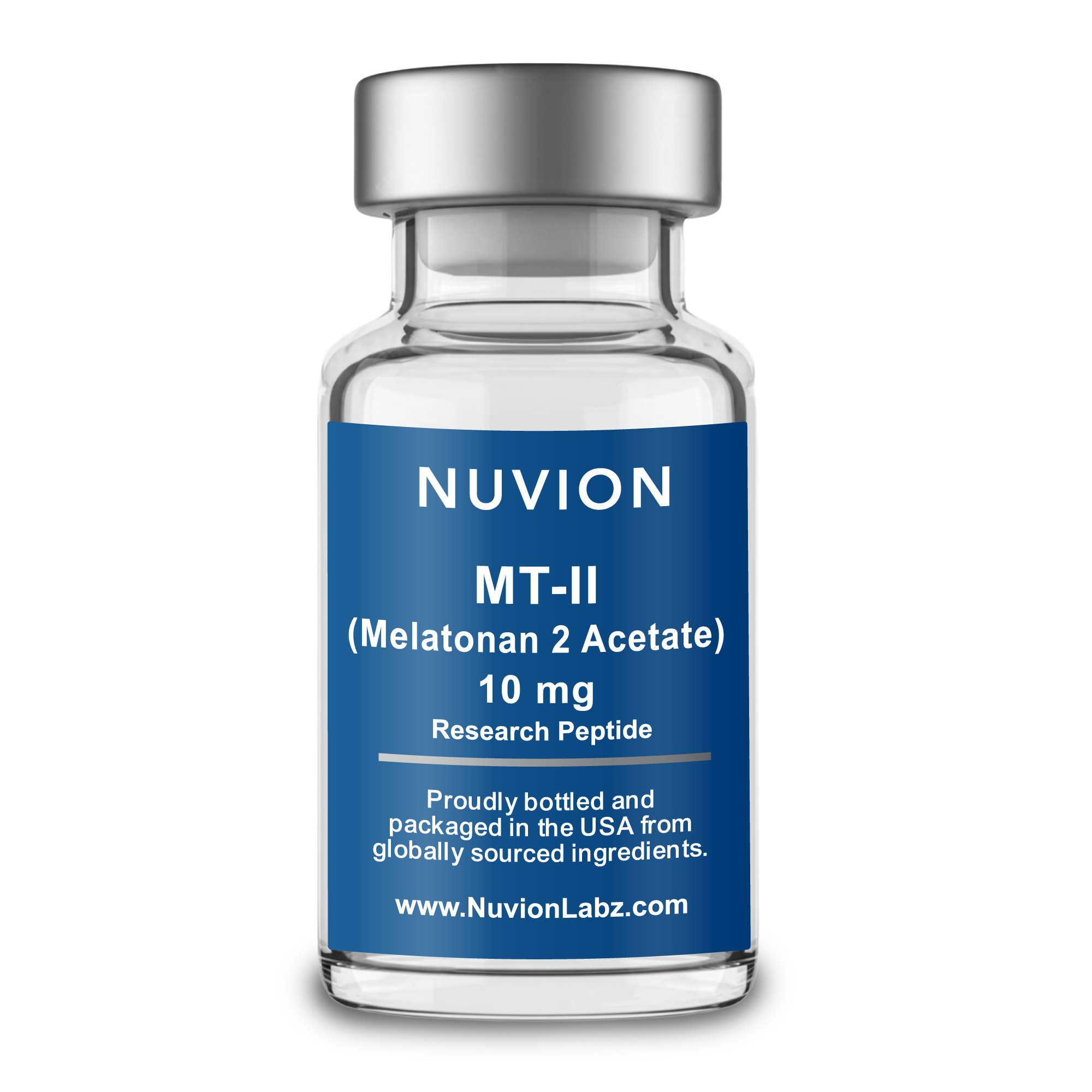 At NUVION™, each vial of Melanotan II Acetate is manufactured under stringent GMP-compliant conditions to ensure exceptional purity, stability, and reproducibility. The peptide is lyophilized to preserve its molecular integrity and extend shelf life during research applications.